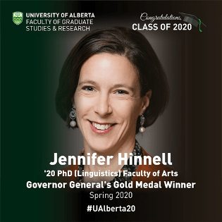 I was honoured to be awarded the Governor General’s Gold Medal, awarded to the top graduating doctoral student, at the University of Alberta’s spring 2020 convocation. I thoroughly enjoyed interviews about my research with the Faculty of Arts, Faculty of Graduate Studies, and U of A’s Folio newsletter